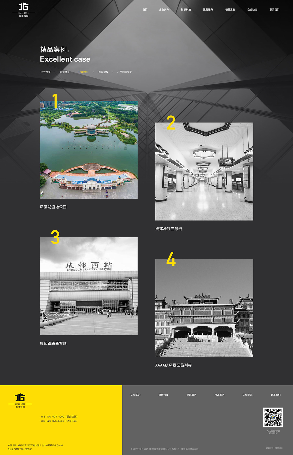 歷經25年的穩健發展,金港物業致力做“有溫度的城市綜合服務商”,其業態涵蓋住宅、寫字樓、商業物業、企業總部及機關事業單位、政府及其它公共設施、公園與景區、醫院與學校、產業園區、高速公路服務站等多種業態。