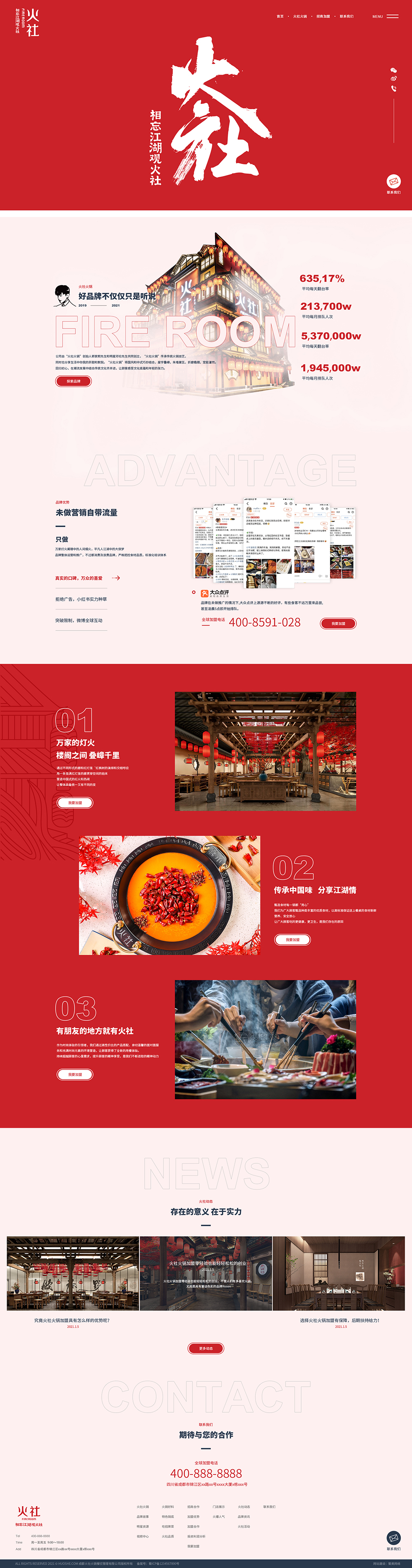 隨著火社火鍋的知名度及行業(yè)品牌影響力的逐漸擴(kuò)大,許多用戶急切想要了解更多火社火鍋品牌的相關(guān)信息,而火社品牌方也需要一個(gè)能全面展現(xiàn)品牌理念、品牌發(fā)展、品牌加盟的官方平臺(tái)。